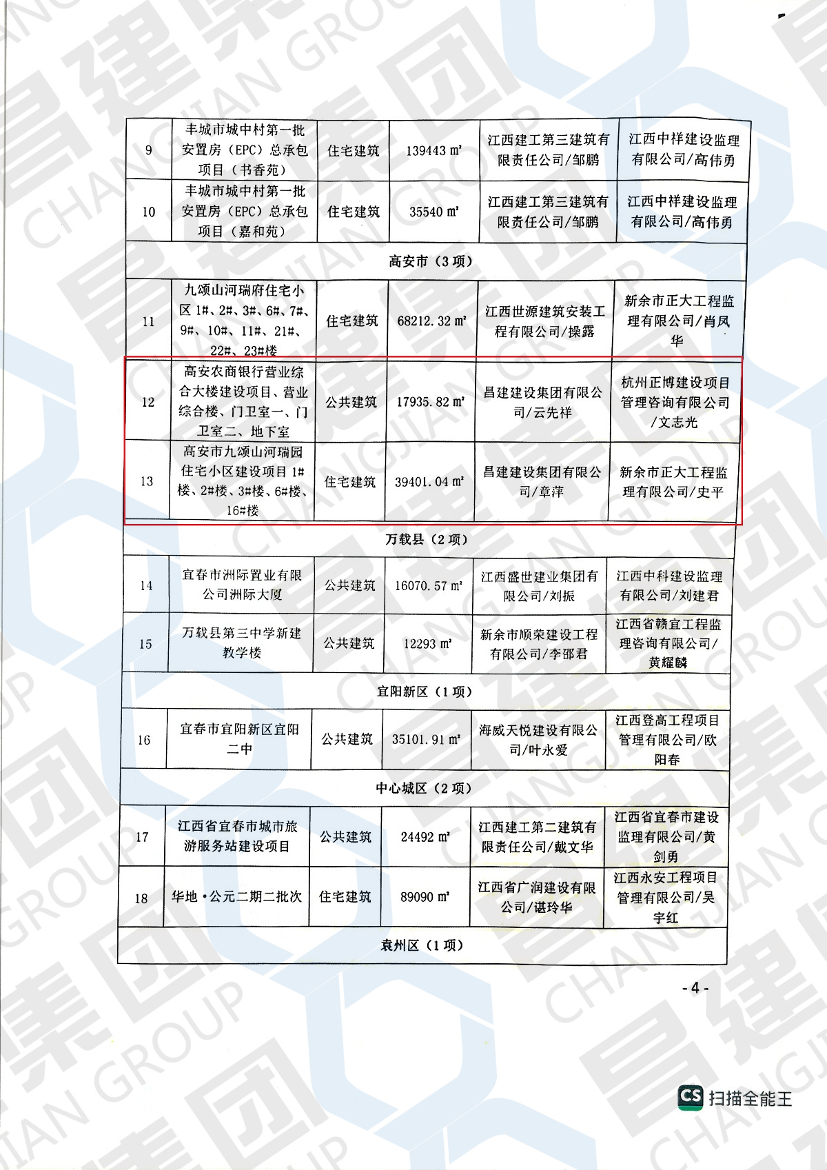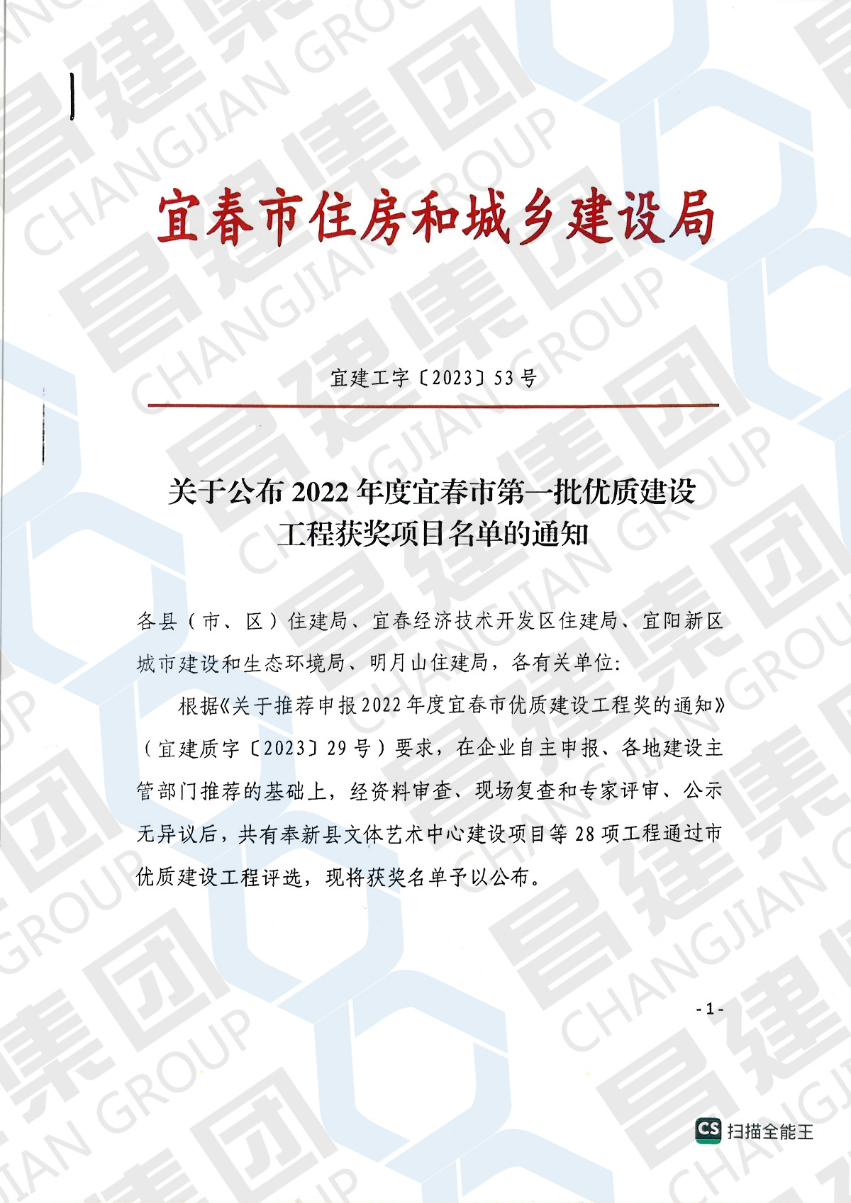 近日,宜春市住房和城乡建设局发布了《关于公布2022年度宜春市第一批优质建设工程获奖项目名单的通知》。由昌建集团承建的“高安农商银行营业综合大楼建设项目、营业综合楼、门卫室一、门卫室二、地下室”项目和“高安市九颂山河瑞园住宅小区建设项目1#楼、2#楼、3#楼、6#楼、16#楼”项目通过评选,一举斩获“2022年度宜春市第一批优质建设工程”荣誉称号!