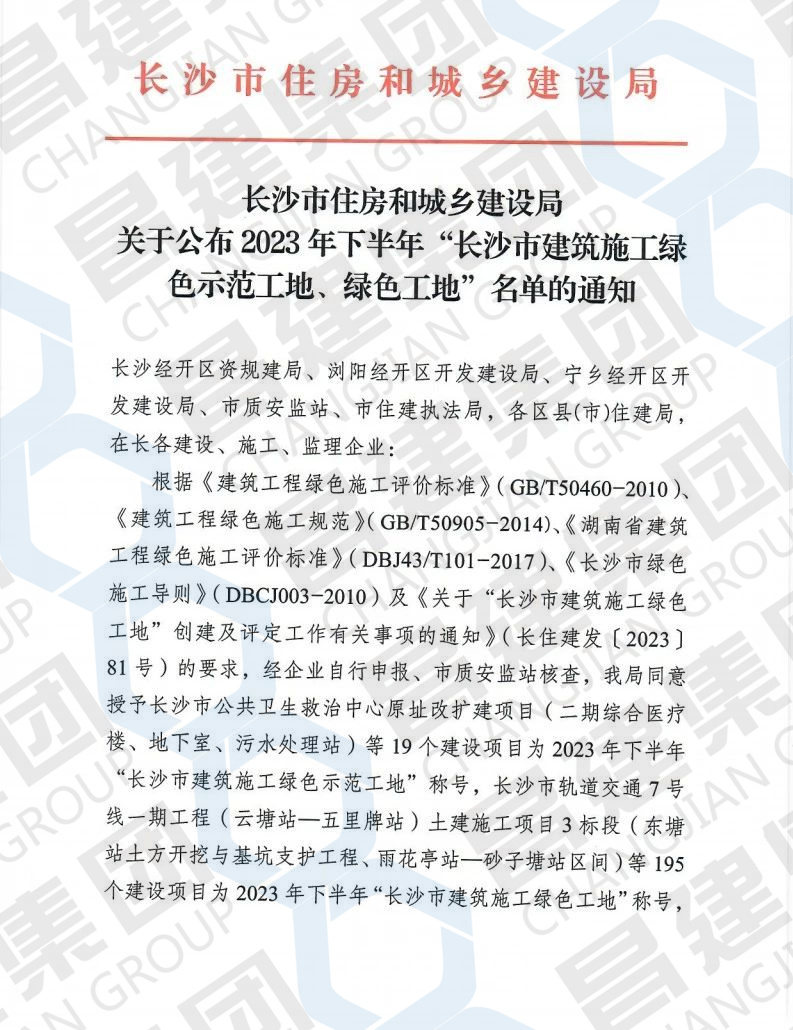 《关于公布2023年下半年“长沙市建筑施工绿色示范工地、绿色工地”名单的通知》
