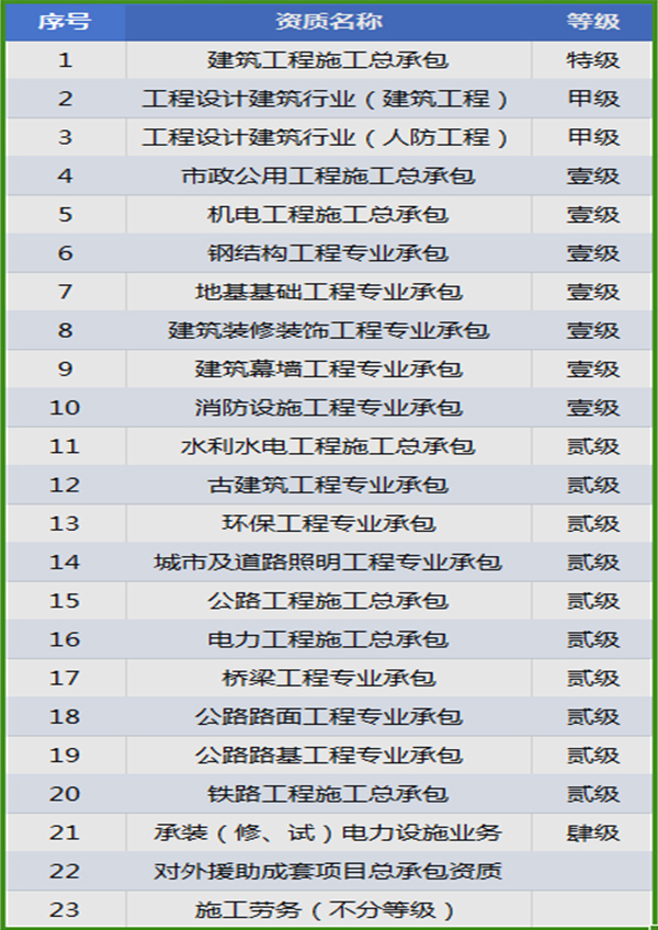 • 获批“对外援助成套项目总承包企业”资格,消防设施工程、建筑幕墙工程专业承包资质荣升壹级,获评“企业信用评价AAA级信用企业”、“工程建设诚信典型企业”、“全国水利建设市场AAA级信用企业”。